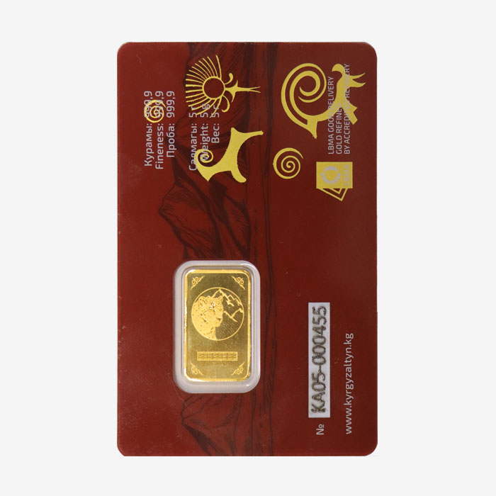 Аффиннаждалган алтындан 5 грамм салмагындагы өлчөнгөн куйма