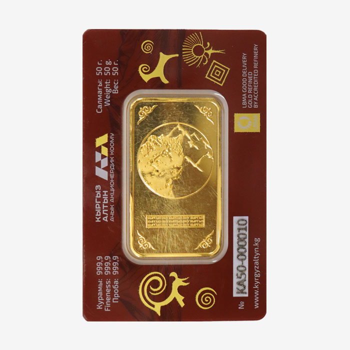Аффиннаждалган алтындан 50 грамм салмагындагы өлчөнгөн куйма