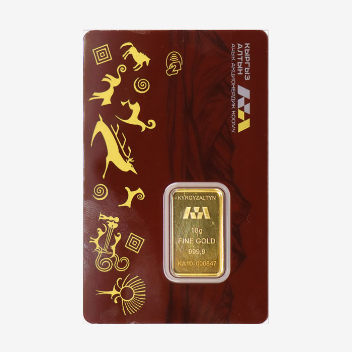 Аффиннаждалган алтындан 10 грамм салмагындагы өлчөнгөн куйма
