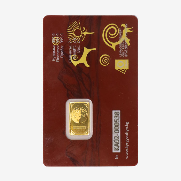 Аффиннаждалган алтындан 2 грамм салмагындагы өлчөнгөн куйма