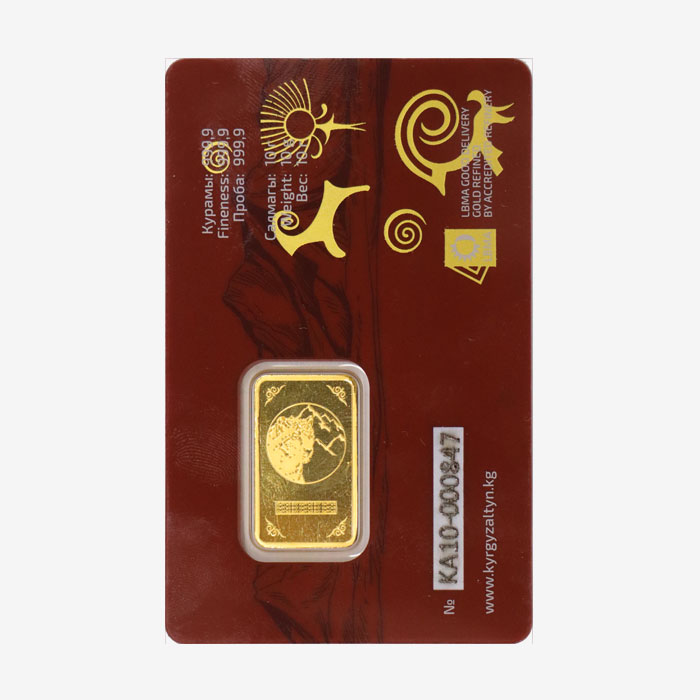Аффиннаждалган алтындан 10 грамм салмагындагы өлчөнгөн куйма