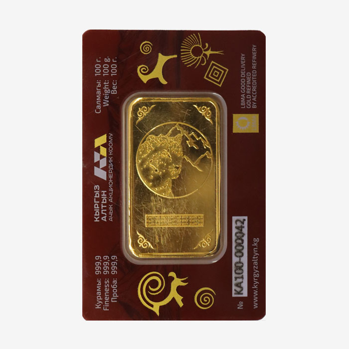 Аффиннаждалган алтындан 100 грамм салмагындагы өлчөнгөн куйма